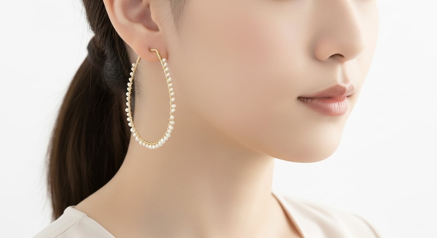 まんまるではない、つぶつぶの淡水パールがやさしい雰囲気を演出します。